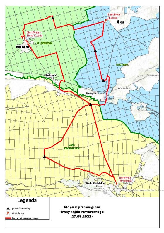 - Nadleśnictwo Rudziniec – Miejscowość Łącza, parking leśny za boiskiem - start i meta.